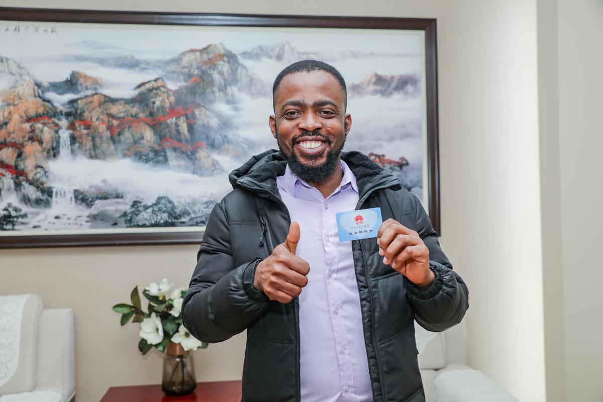 Eric Fordjour, a post-doctoral scholar from Ghana at Tianjin University, was delighted to receive a "Join in Card" in Tianjin on Dec 30.