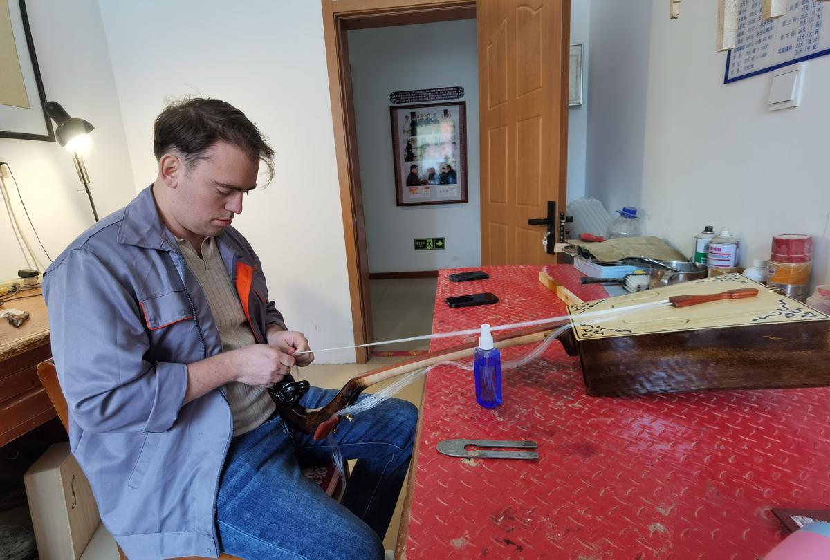 "There are similar musical instruments in Norway, but they can only produce simple music, and their sounds are far less rich than the horsehead fiddle," said Messelt, a 34-year-old Norwegian. He came to China three years ago to study Chinese, economics, and management at Peking University and Zhejiang University.