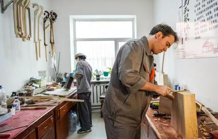 Edward Berger Vennesland Messelt makes a horsehead fiddle in Qian Gorlos Mongolian autonomous county of Songyuan city, Jilin province. [Photo provided to chinadaily.com.cn]
