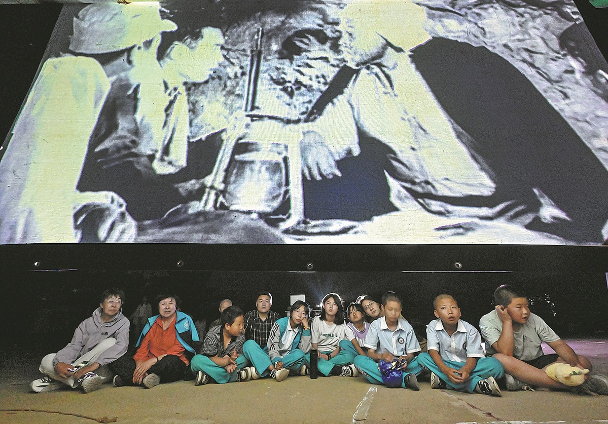Students watch the classical revolutionary-themed movie Tunnel Warfare on June 23. LIU TONG/WANG ZHONGXUN/DATONG DAILY
