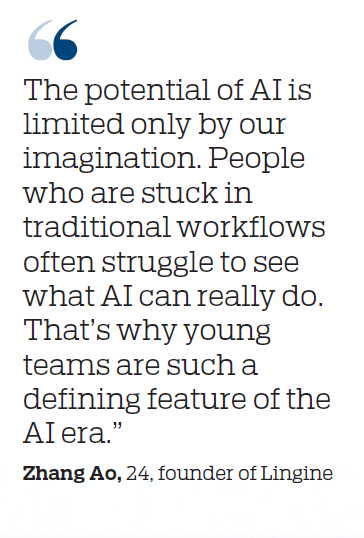 "The potential of AI is limited only by our imagination. People who are stuck in traditional workflows often struggle to see what AI can really do. That's why young teams are such a defining feature of the AI era," Zhang said.