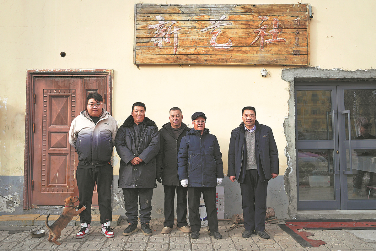 Before hitting the road for a performance, the troupe members pose for a group photo in front of their studio. [Photo by Qi Zhiyue/Xinhua]