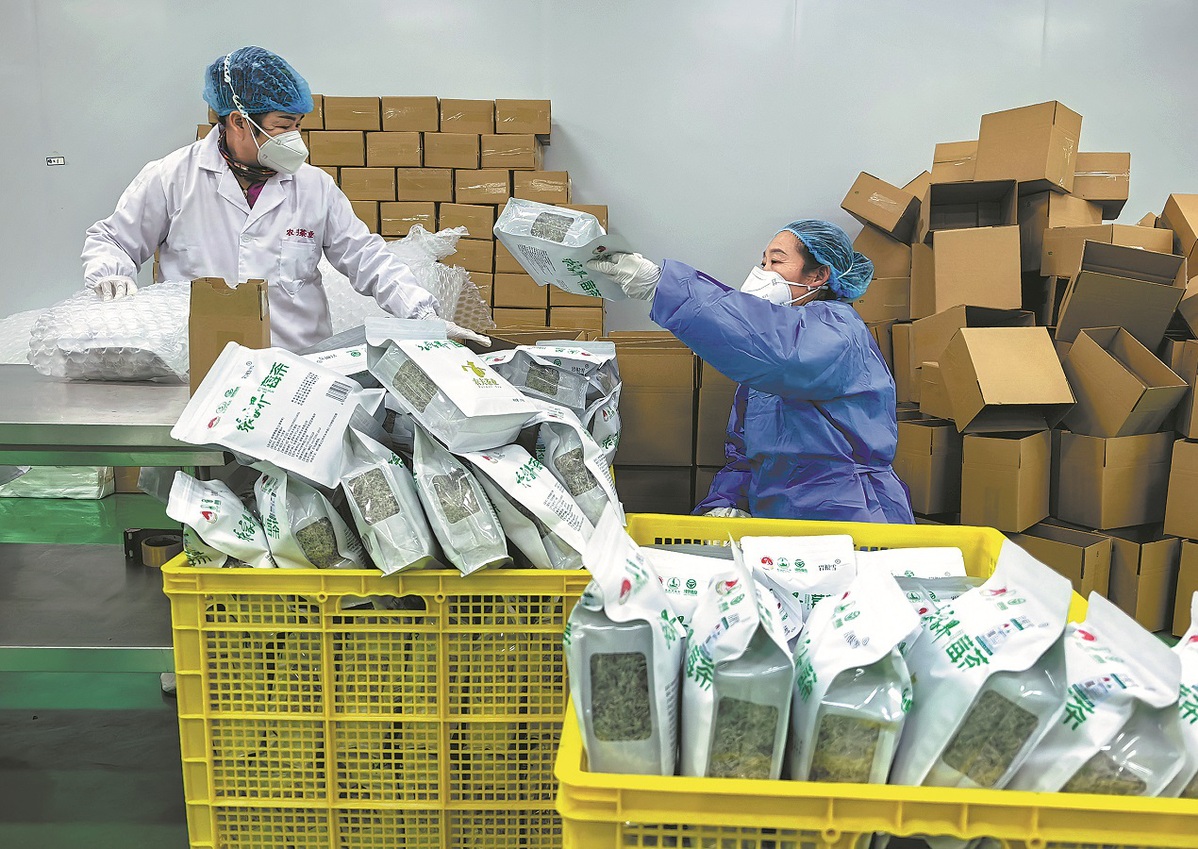 In late January, Qin Yulian was busy packaging tea bags filled with dried, frost-white leaves at a processing workshop run by Zhangjiajie Nongfu Tea Industry in Hunan province. Weeks ahead of the Spring Festival holiday, orders for vine tea, or Ampelopsis grossedentata, surged as the local specialty emerged as a popular festive gift among shoppers.
